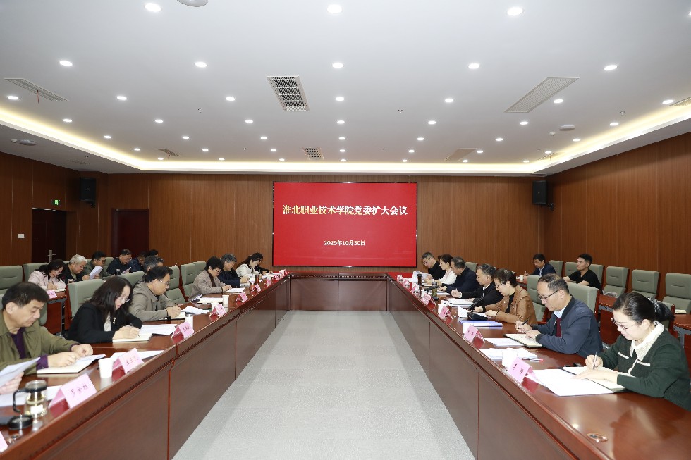 10月30日上午,院党委召开扩大会议,传达学习党的二十届四中全会精神,安排部署我院学习宣传贯彻工作。党委书记代礼红主持会议并讲话,强调要切实把思想和行动统一到党的二十届四中全会精神上来,与贯彻落实习近平总书记关于教育的重要论述和关于职业教育工作的重要指示批示精神结合起来,拼搏进取、接续奋斗,以办学治校的实际成效服务现代化美好淮北建设。